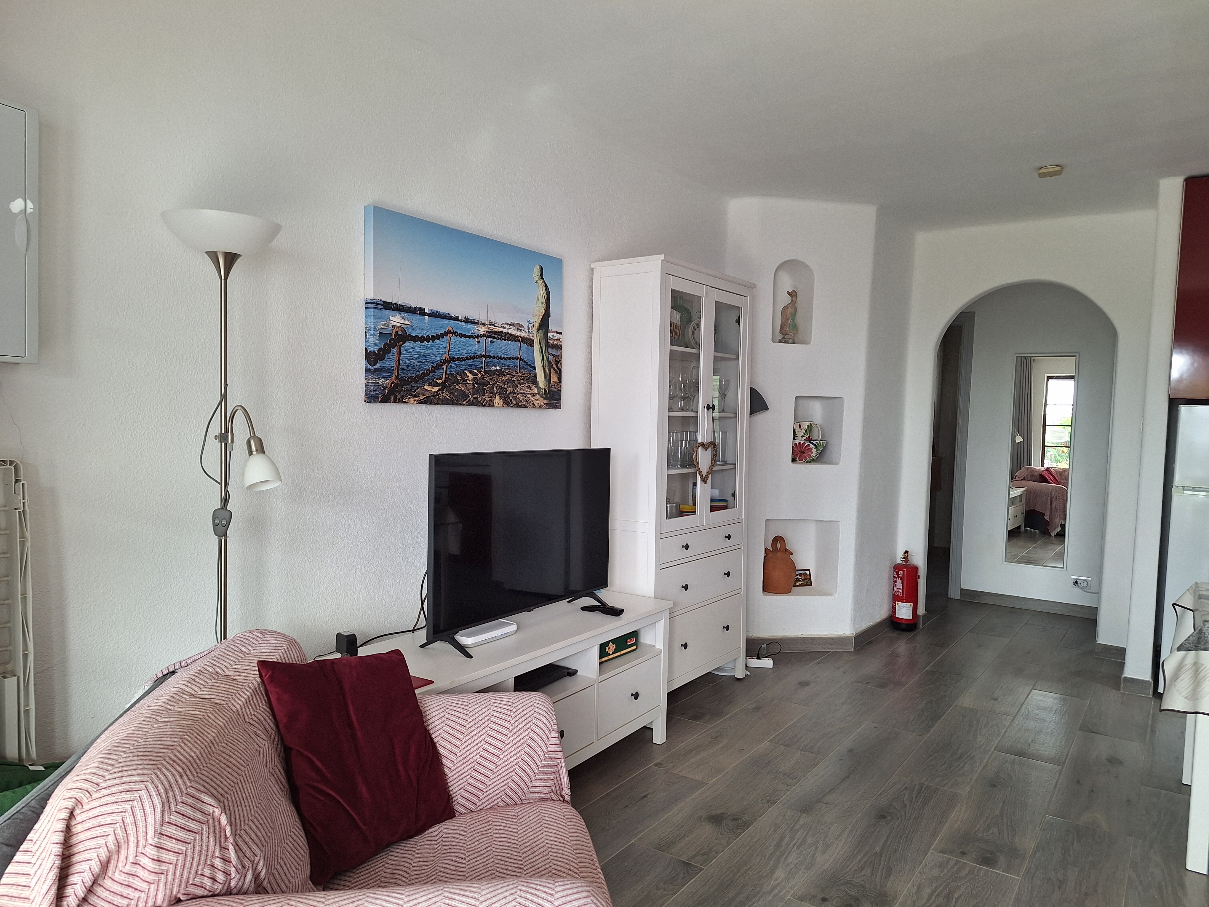 There is flat screen satellite TV in the lounge, providing British, Spanish, German and Italian channels and a DVD player. There is also a satellite TV in the bedroom. Also provided is free Wi-Fi internet connections, login codes are available from reception. There is a hob and oven, microwave, toaster, washing machine, iron and ironing board, electric fans and a hairdryer. There is also a travel cot suitable for an infant, guests should bring their own linen if intending to make use of this.